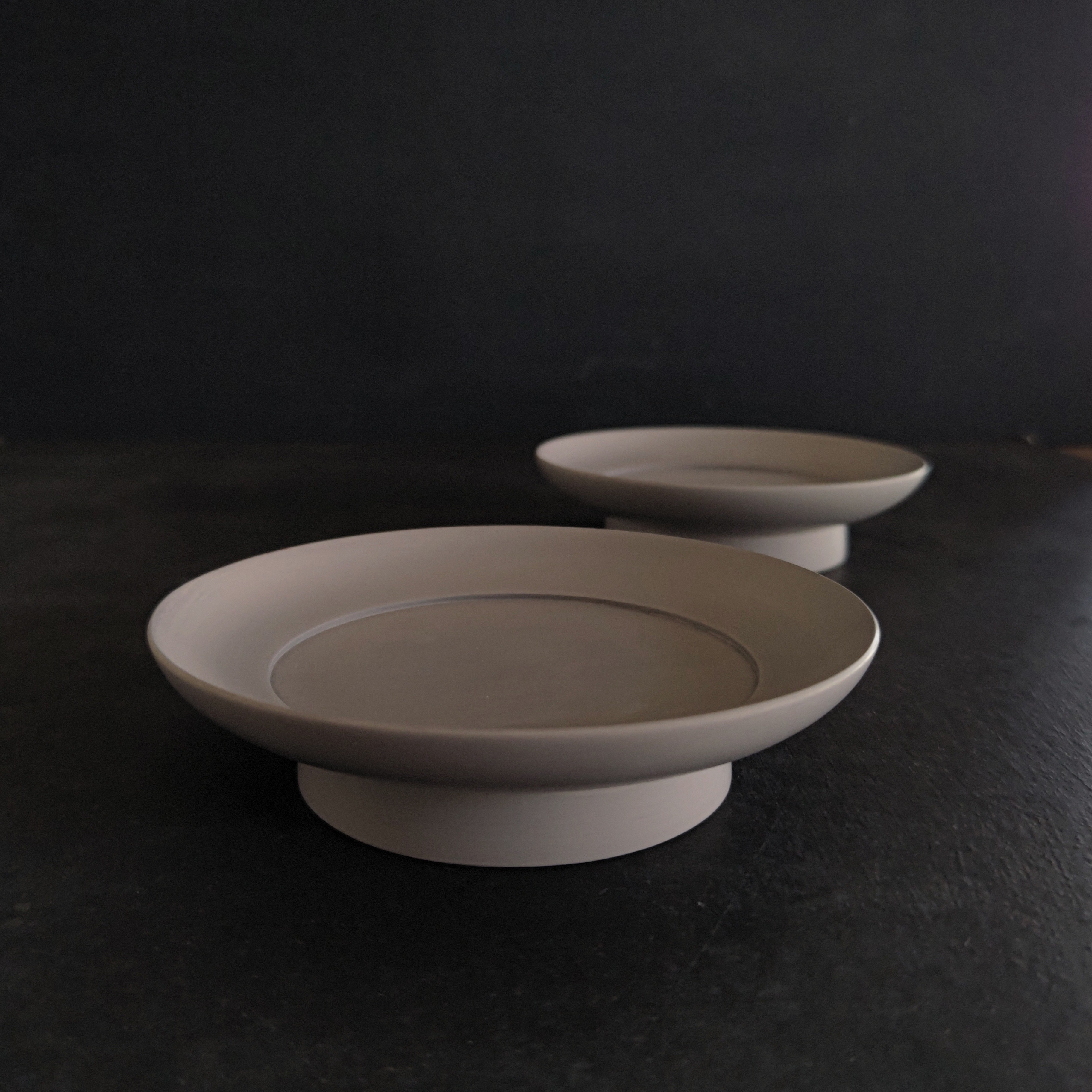 ②アッシュグレー(白漆)塗り分け菓子皿