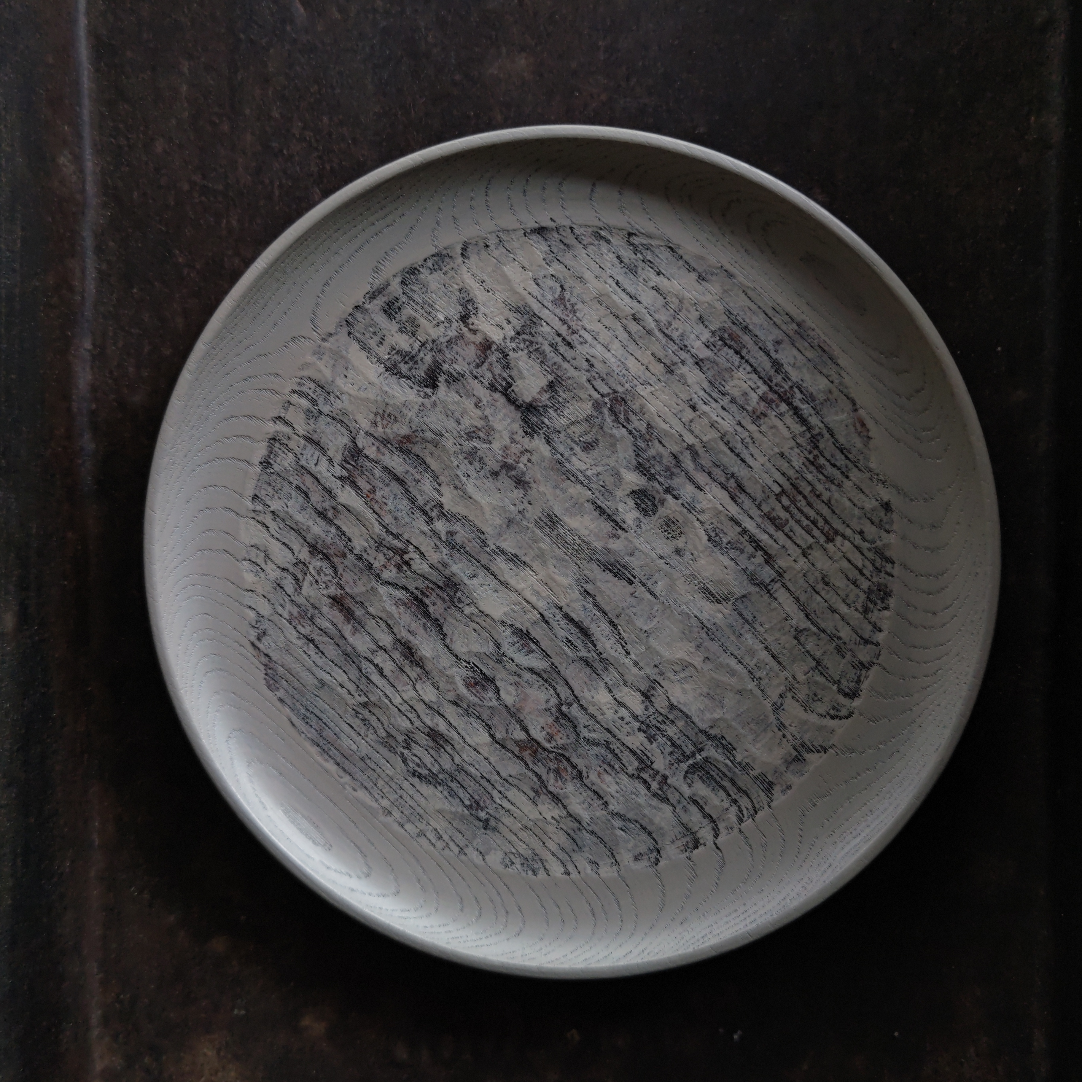 ⑦‐aアッシュグレー(白漆)ハツリ平皿