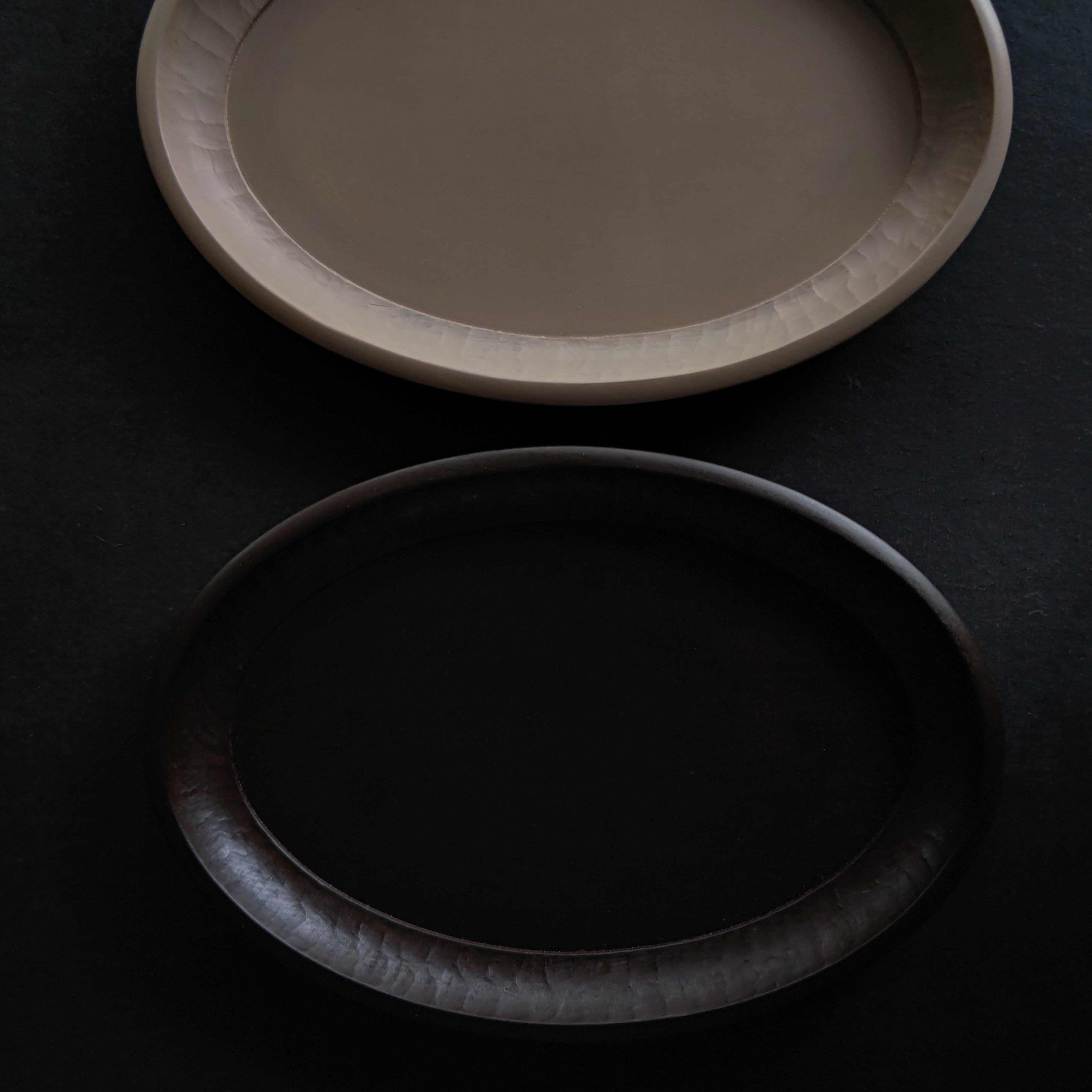 12.ハツリ平菓子皿(グレージュとカフェブラウン)