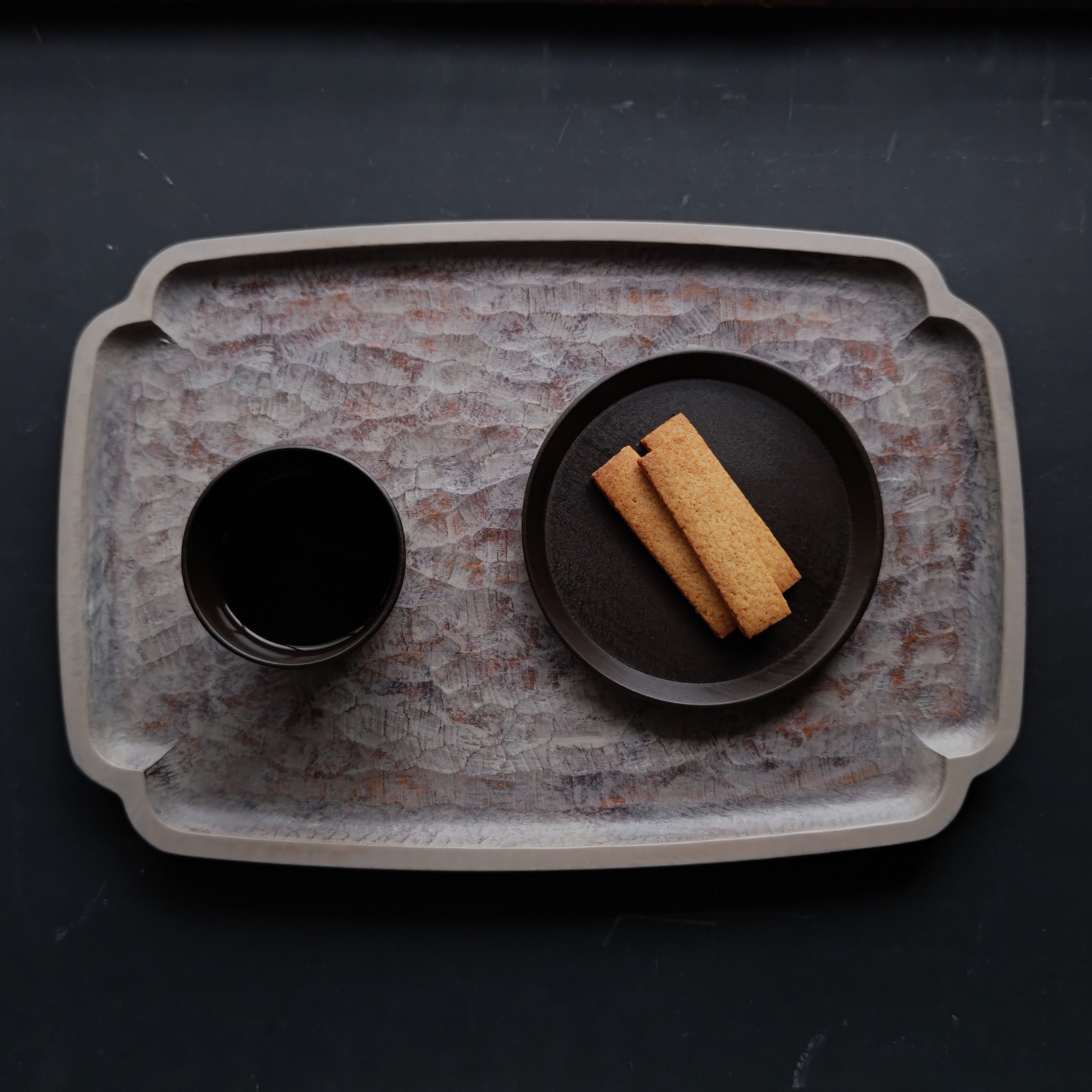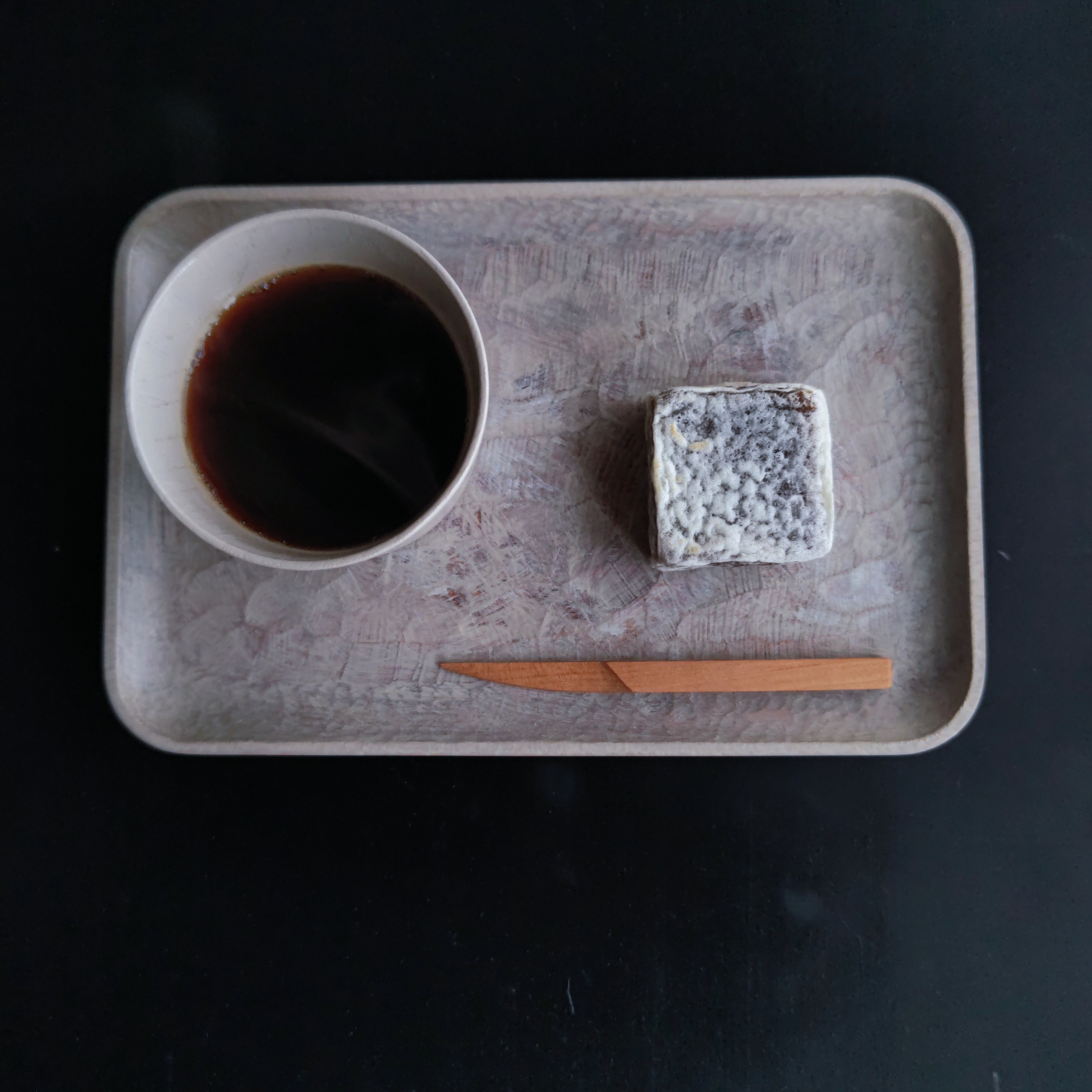 ①カカオブラウン(漆)の菓子皿