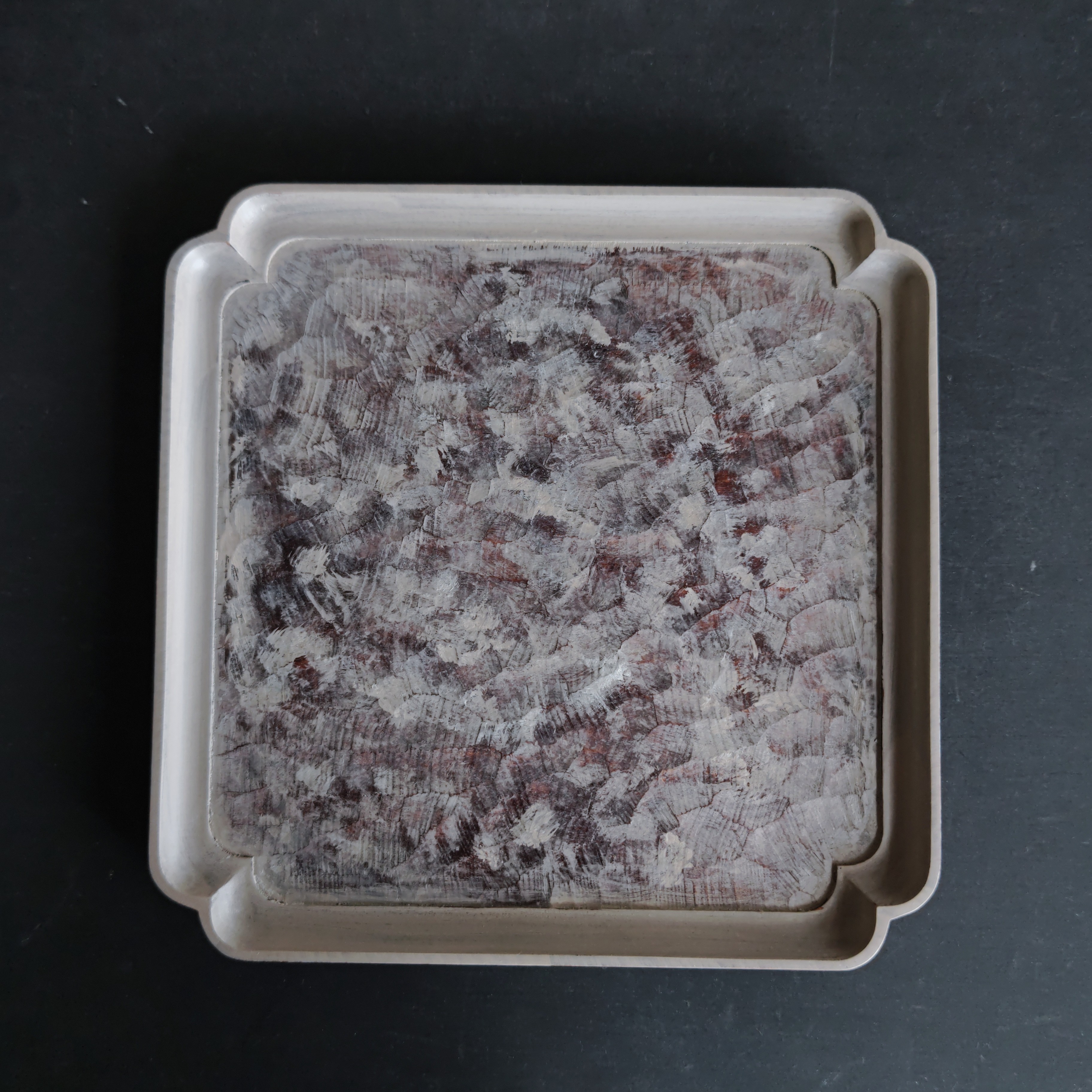 ⑫アッシュグレー(白漆)塗り分けハツリ角皿