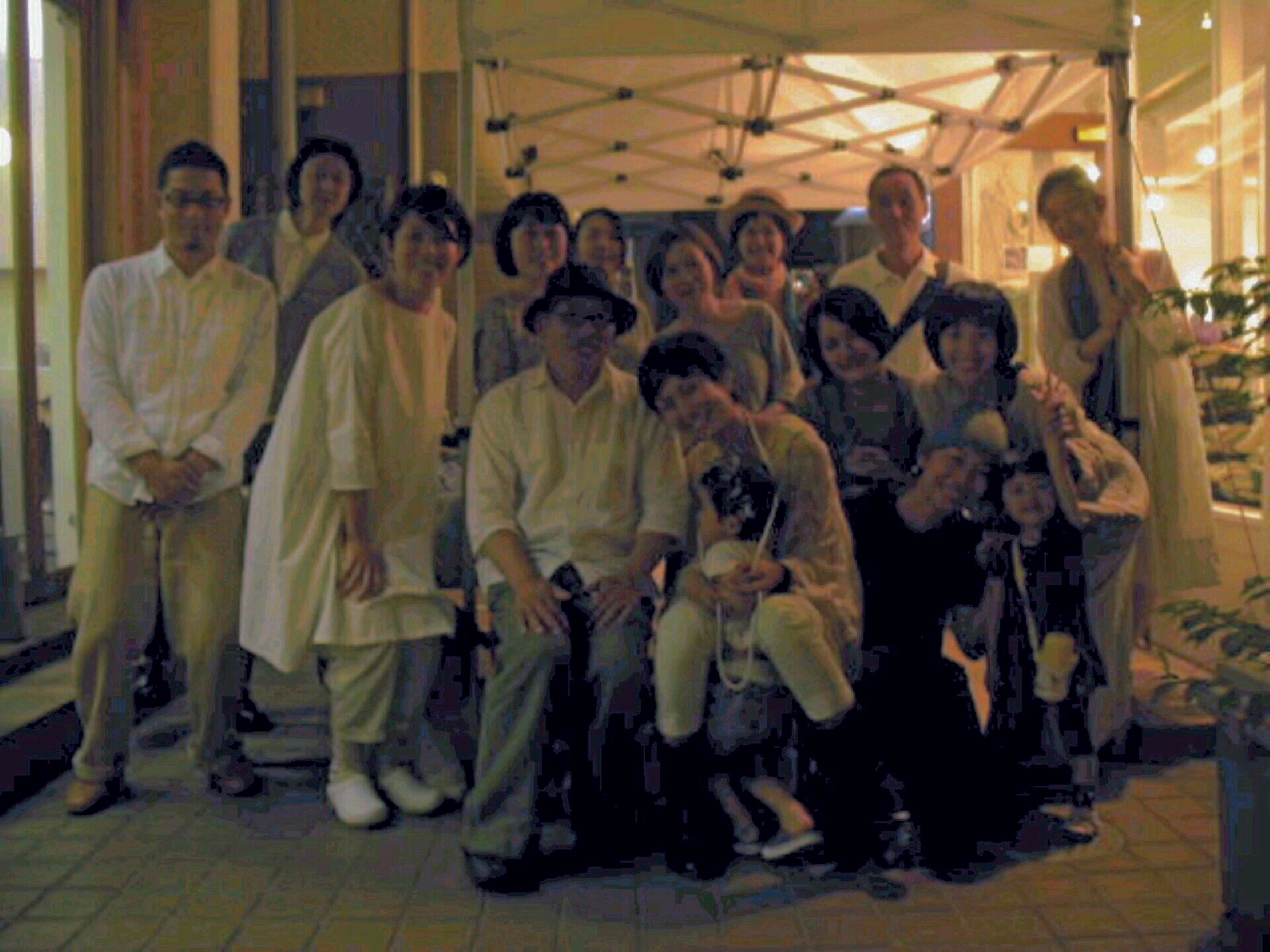 ショップの入り口前に張られた白いテントの下で