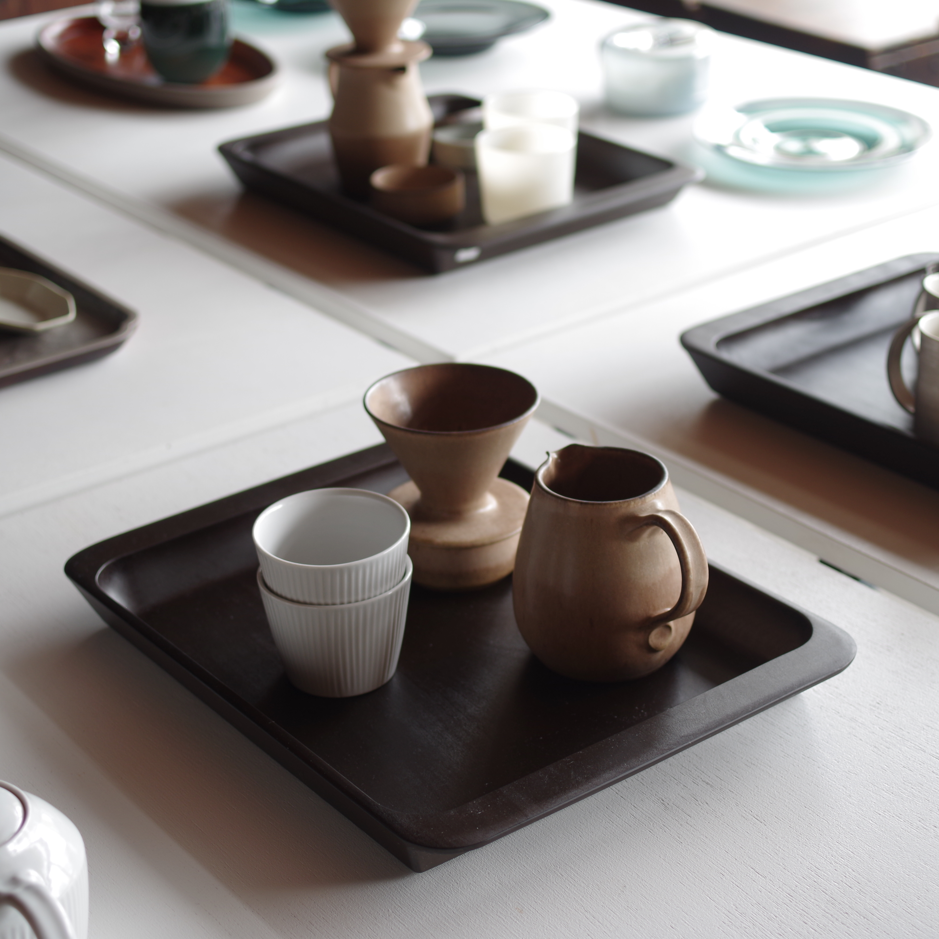 ぼくの作った4種のお盆に4人の作家が