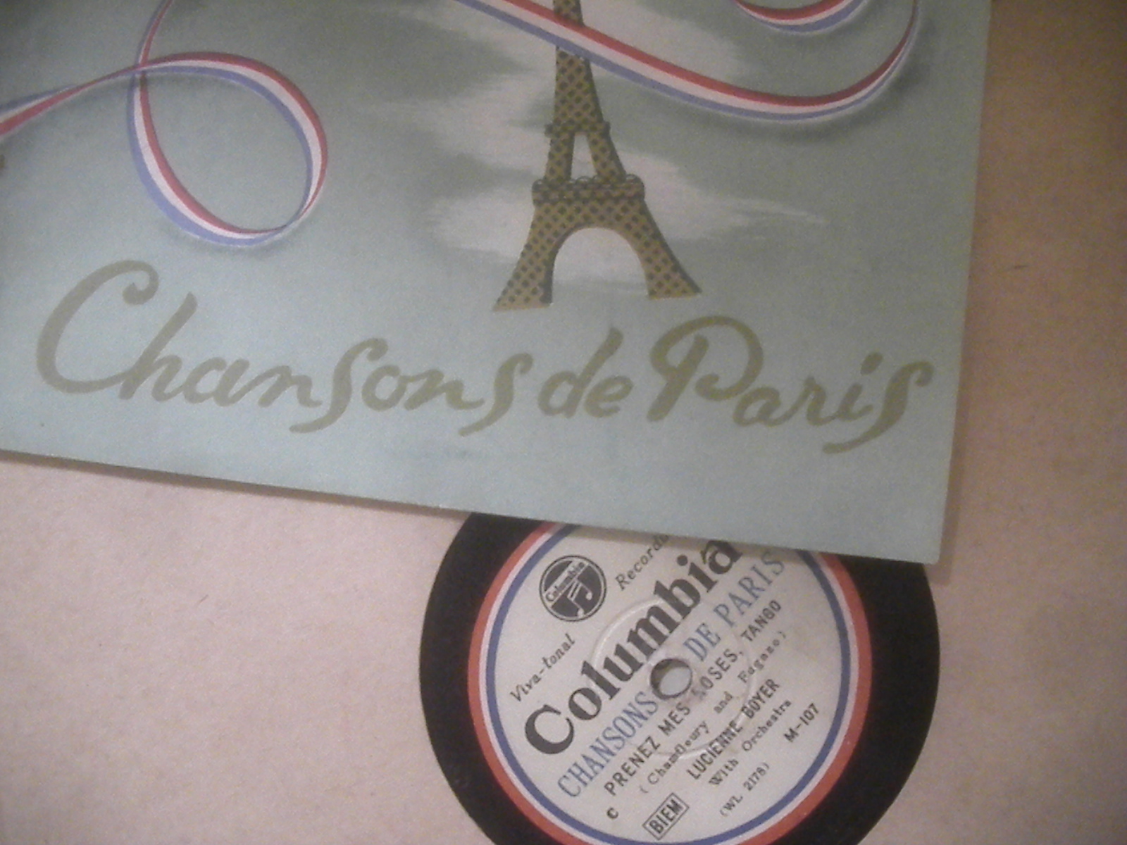 貴重なSPレコード(シャンソン)を蓄音機で聴きながら
